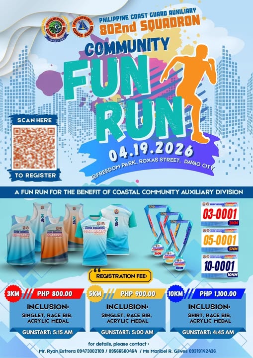 One of the most exciting community events happening in Davao this 2026 is the Philippine Coast Guard Auxiliary 802nd Squadron Community Run on April 19, 2026 at Freedom Park in Roxas, Davao City, and I am going to be there.